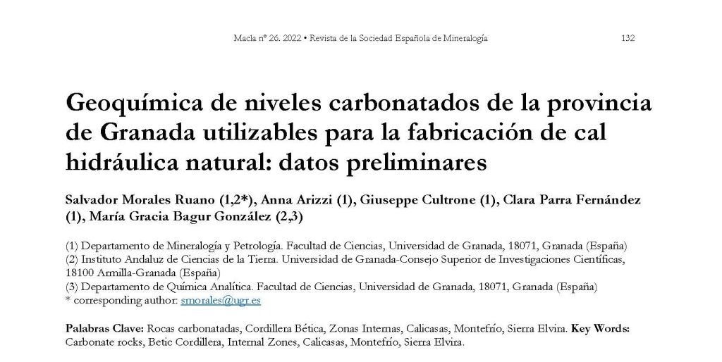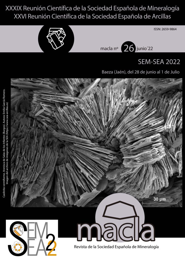 Presentación de póster en XXXIX Reunión de la Sociedad Española de Mineralogía en Baeza (España). Macla, 26, pp. 132-133 (2022). ISBN: 2659-9864.